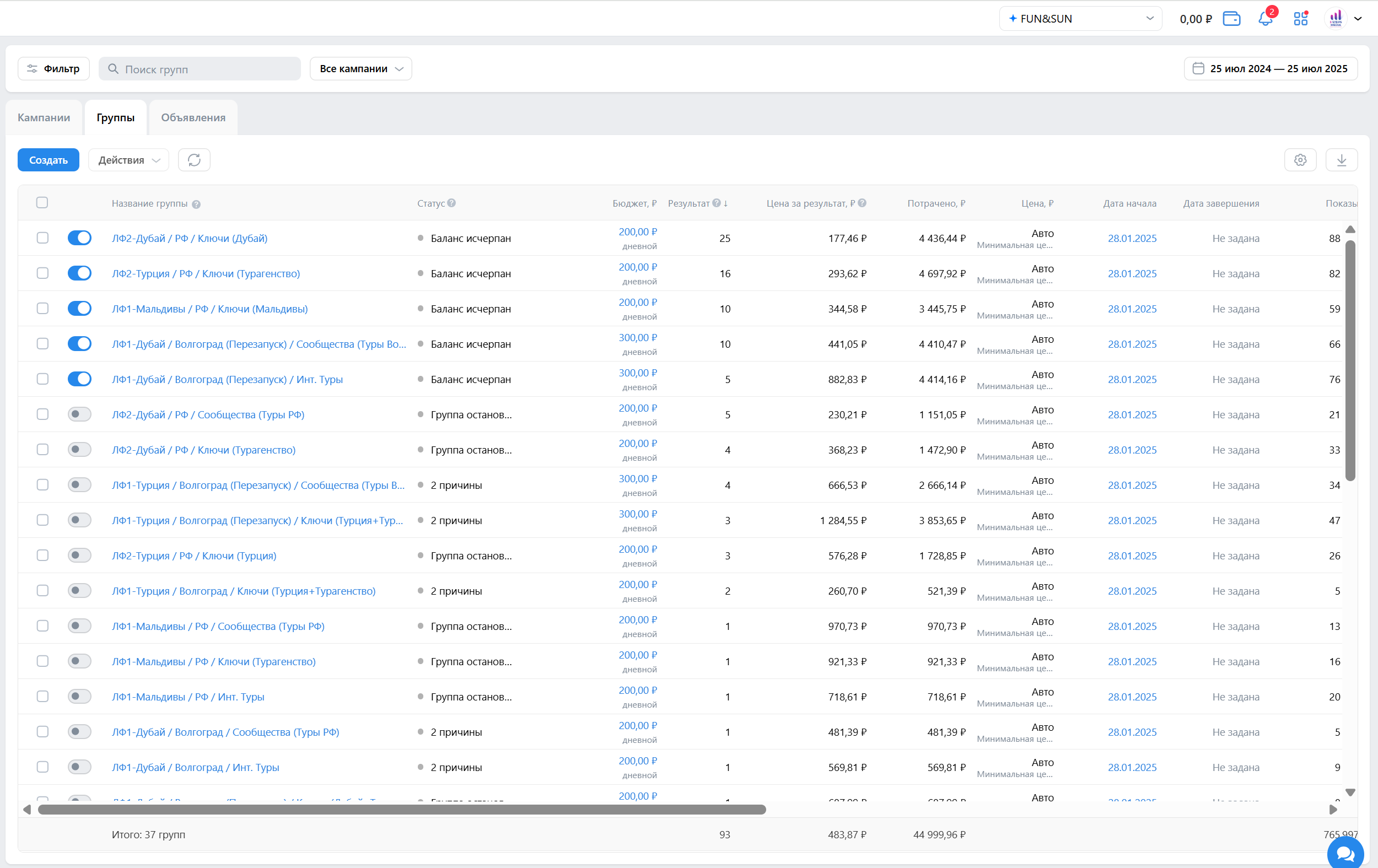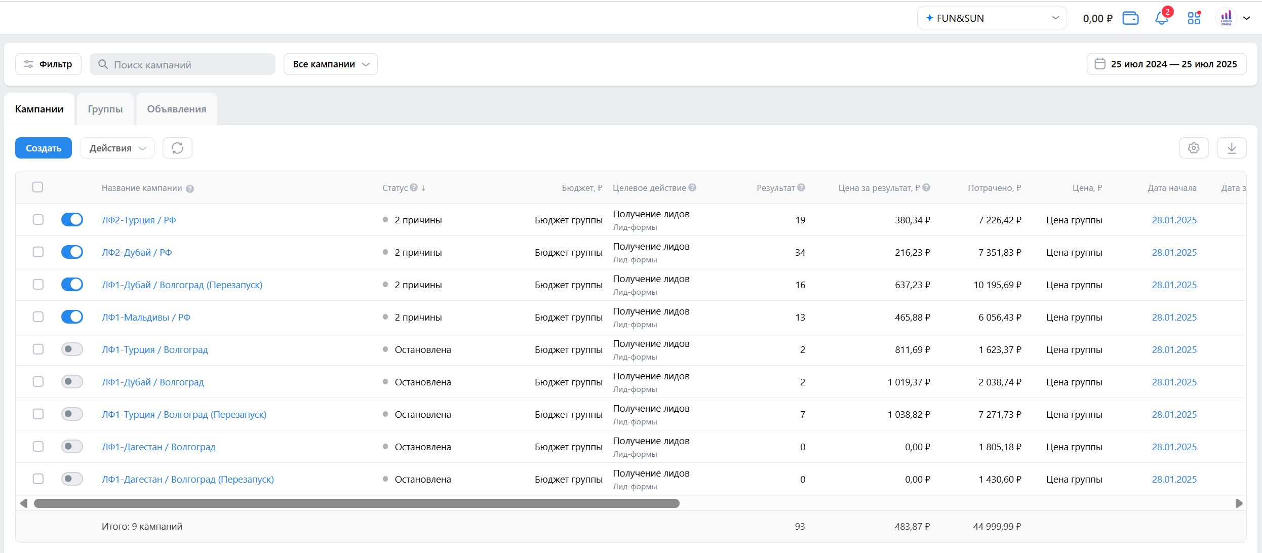 Привлечение целевых лидов для турагентсва FUN&SUN в Волгограде