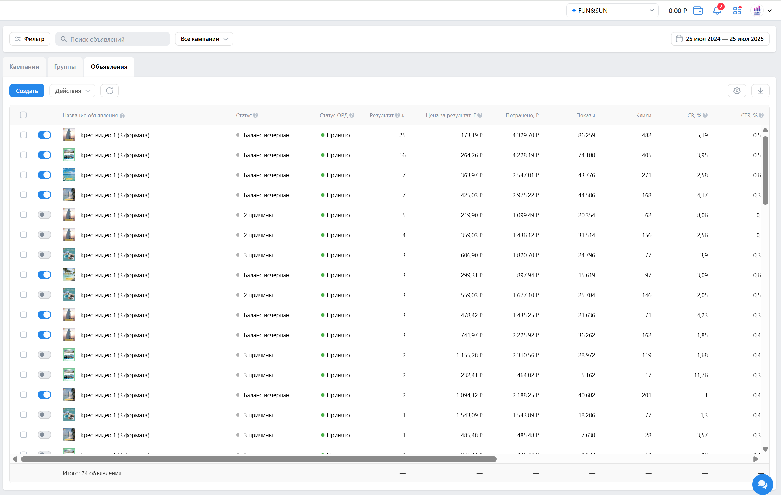 Скрины рекламного кабинета