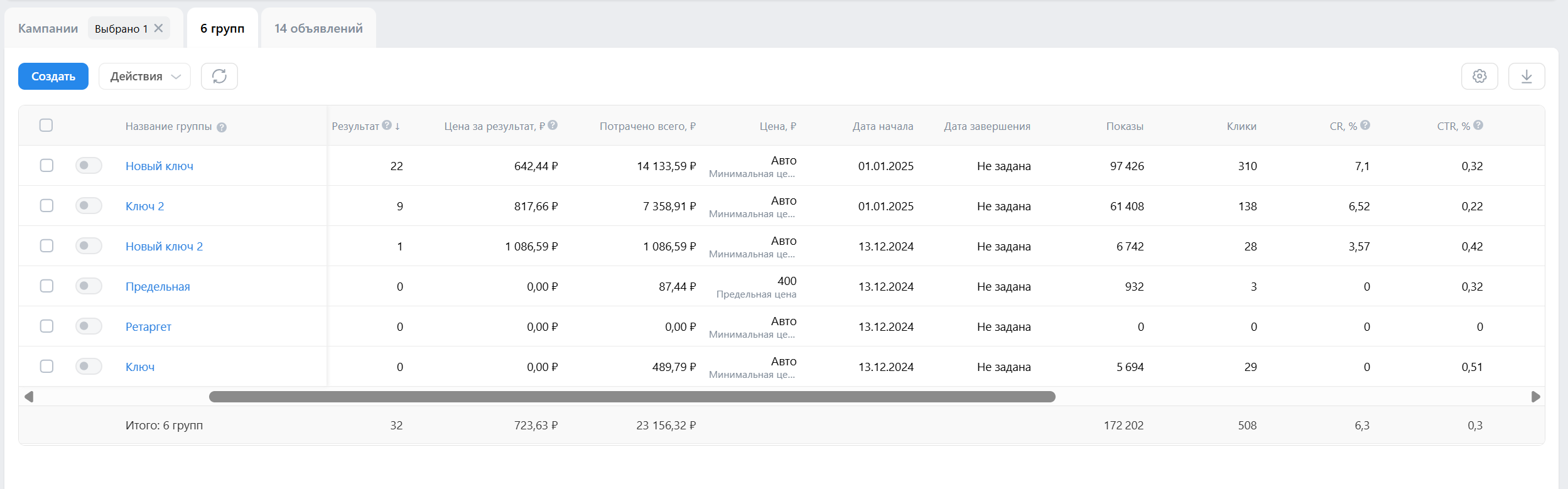 • Оптимизация в процессе: отключение неэффективных сегментов, перераспределение бюджета на самые конверсионные связки