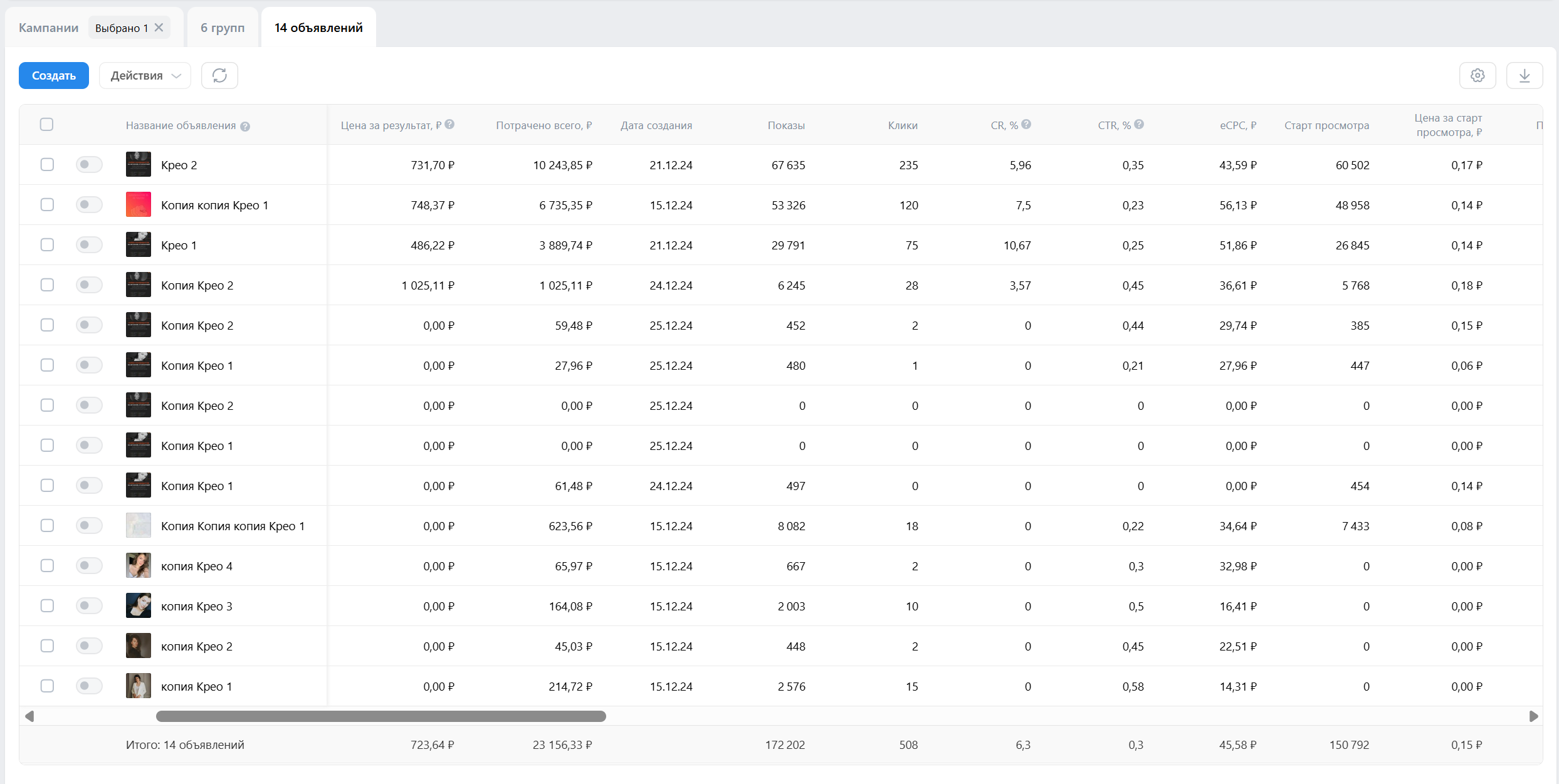 Скрины рекламного кабинета