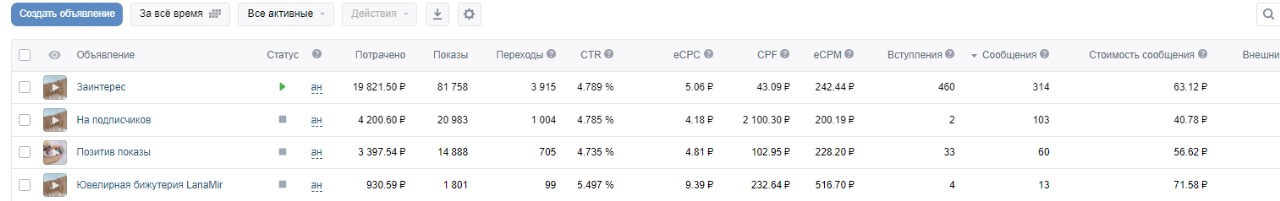 Тестирование различных аудиторий и креативов (связок).