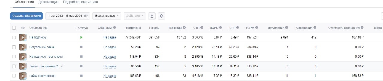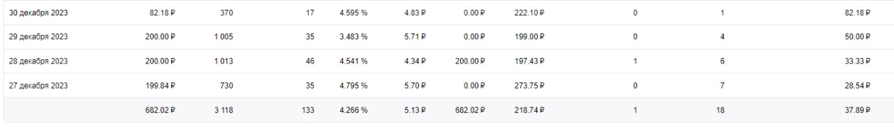 • Средняя цена клика: 6,03₽