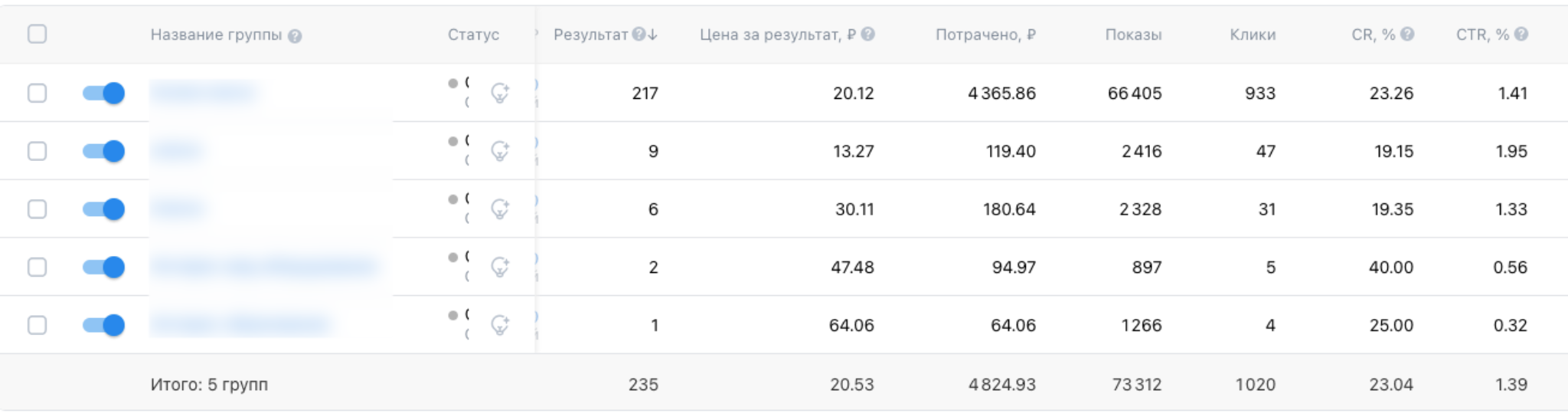 Скрин всех рекламных кампаний