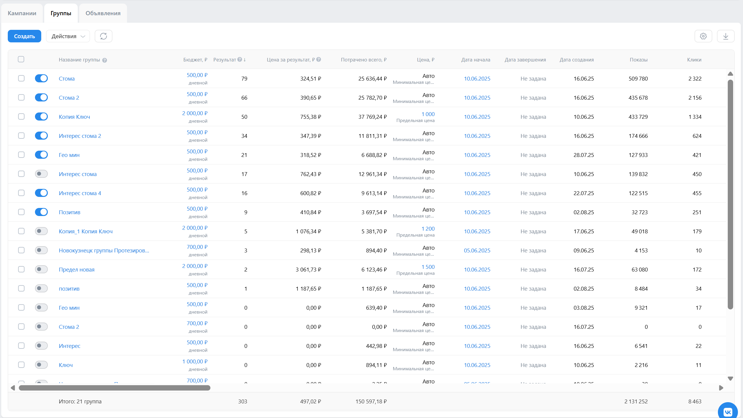 После этого сконцентрировали бюджет на самых результативных связках, отключив менее конверсионные.