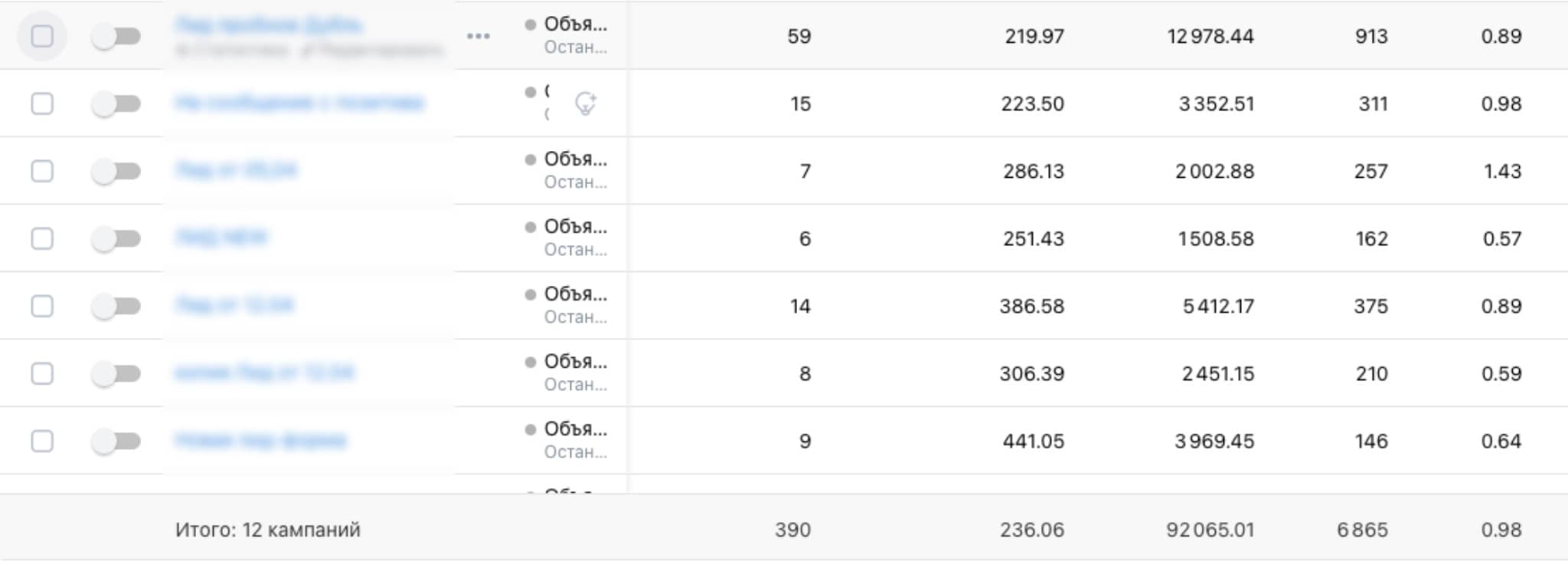 Было протестировано белее 10 аудиторий и 50 креативов.