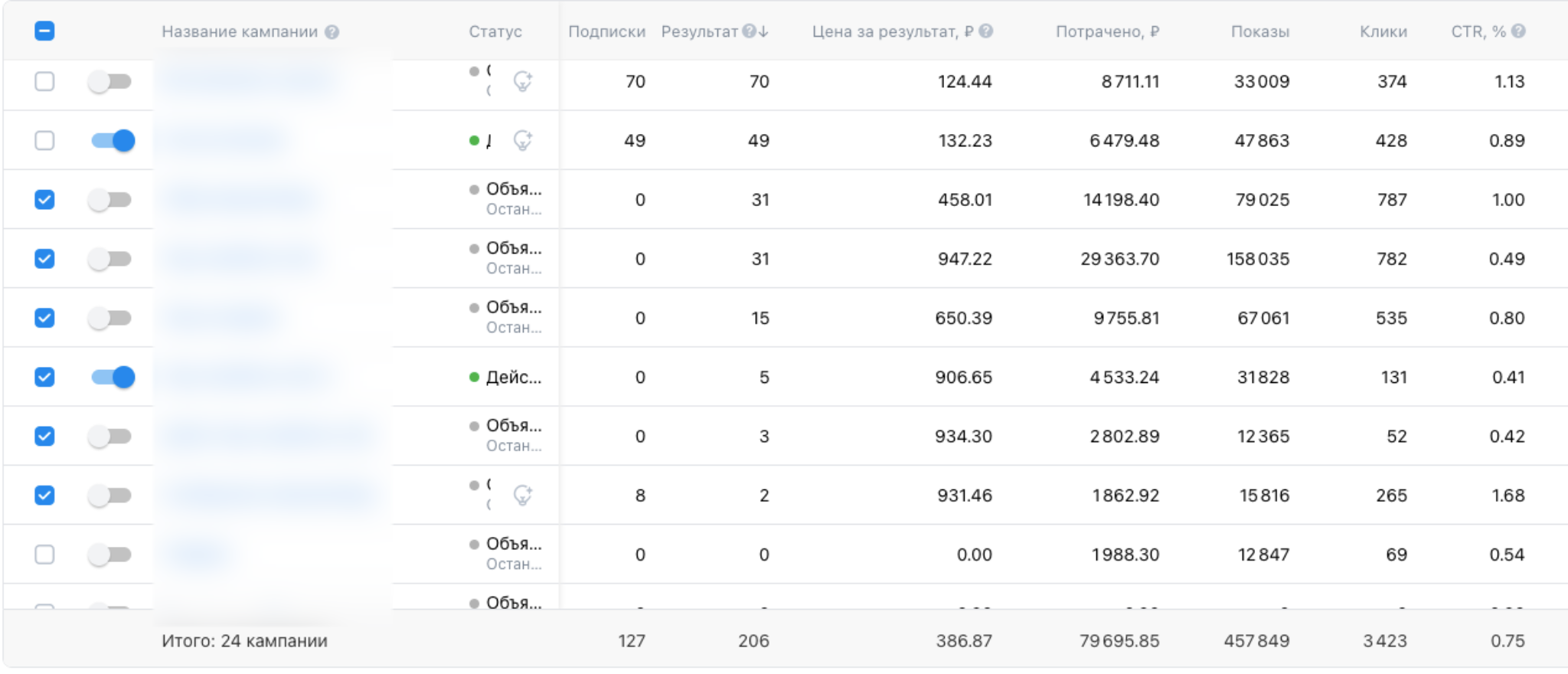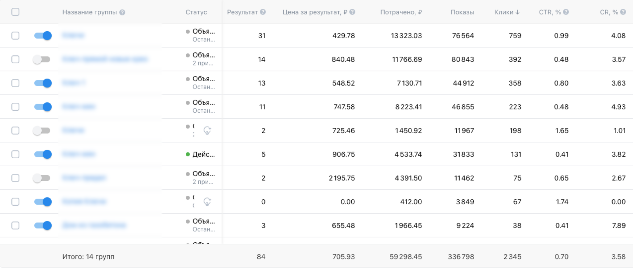 • Средний CTR: 0,75%