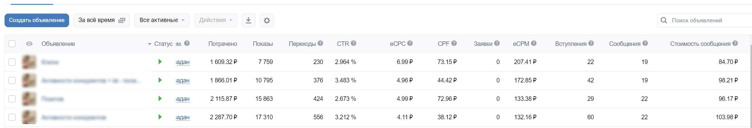 • Средняя стоимость заявки за всё время: 328₽